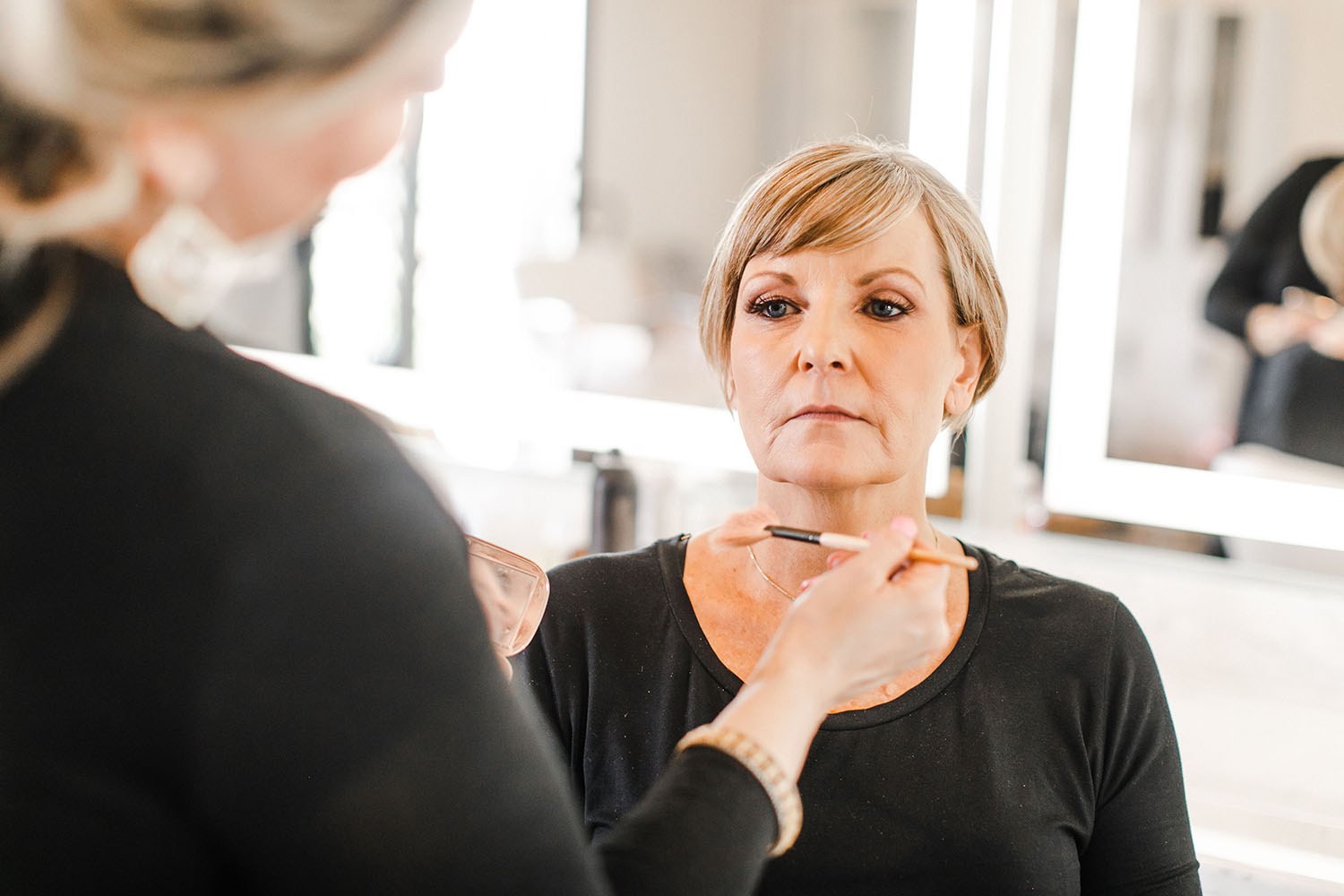 "Ashlee has been helping me with my make up addiction for almost 10 years. It started with my wedding make up and has progressed into a friendship. I leave her chair feeling beautiful everytime, but also relaxed and happy because her chair is always a safe place to vent or laugh about anything. She has also created another Jane Junkie in my daughter who has been getting "lips" in Ash's chair since she could talk. Love you sweet lady!!!"
